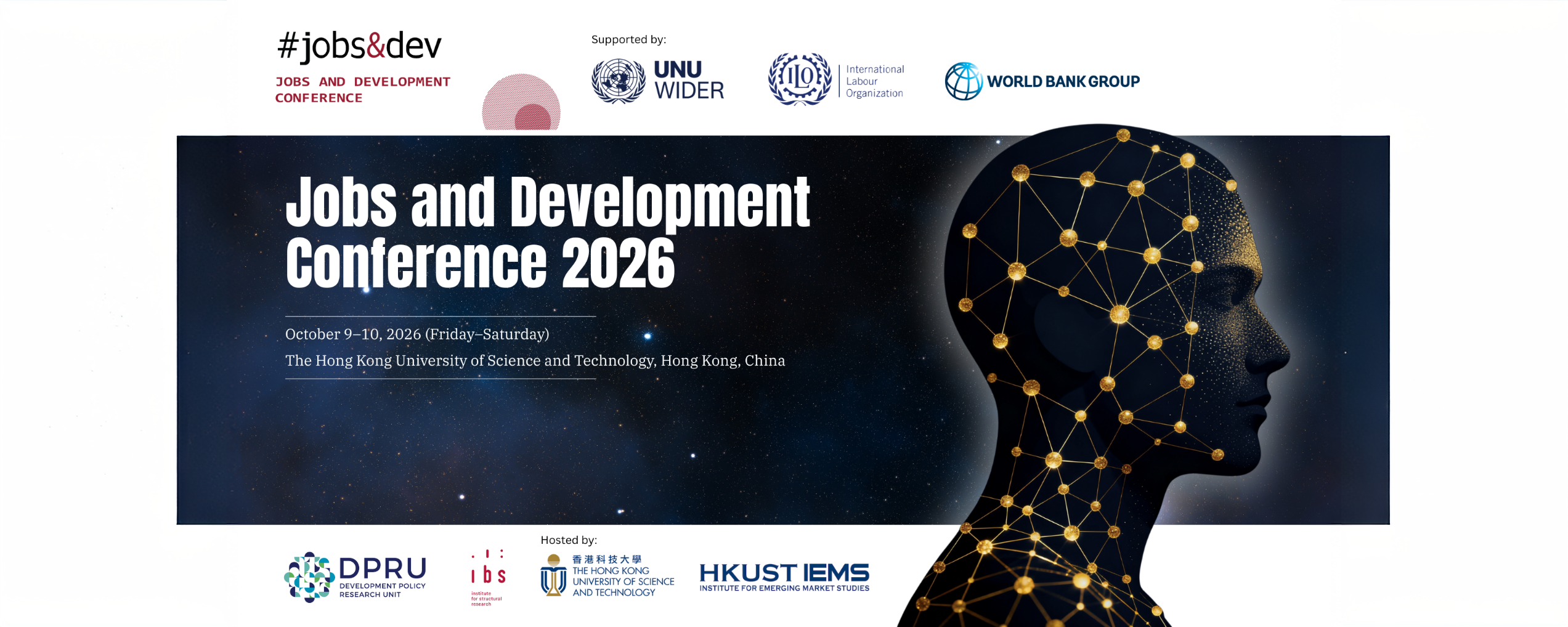 The Jobs and Development Conference (#Jobs&Dev) is a global event co-organized by the World Bank, UNU-WIDER, the International Labour Organization (ILO), the Development Policy Research Unit at University of Cape Town (DPRU, South Africa), Institute for Structural Research (IBS, Poland) and the Hong Kong University of Science and Technology Institute for Emerging Market Studies (HKUST IEMS, Hong Kong). The 2026 edition of the conference will take place on October 9-10, 2026, hosted by IEMS at the HKUST in Hong Kong, China.